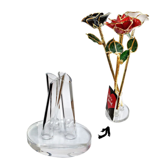 Introducing Steven's exclusive Rose Displays! Perfect for showcasing gold, platinum, and rose gold, our acrylic displays come in configurations for a single, double, triple, half dozen, or dozen roses. Designed specifically for Steven’s gold and platinum roses, these displays present them in a stunning arrangement, forming a beautiful bouquet. Each display features a notch across the base, ideal for adding a rose scent or a gift message. Please note, roses are sold separately.