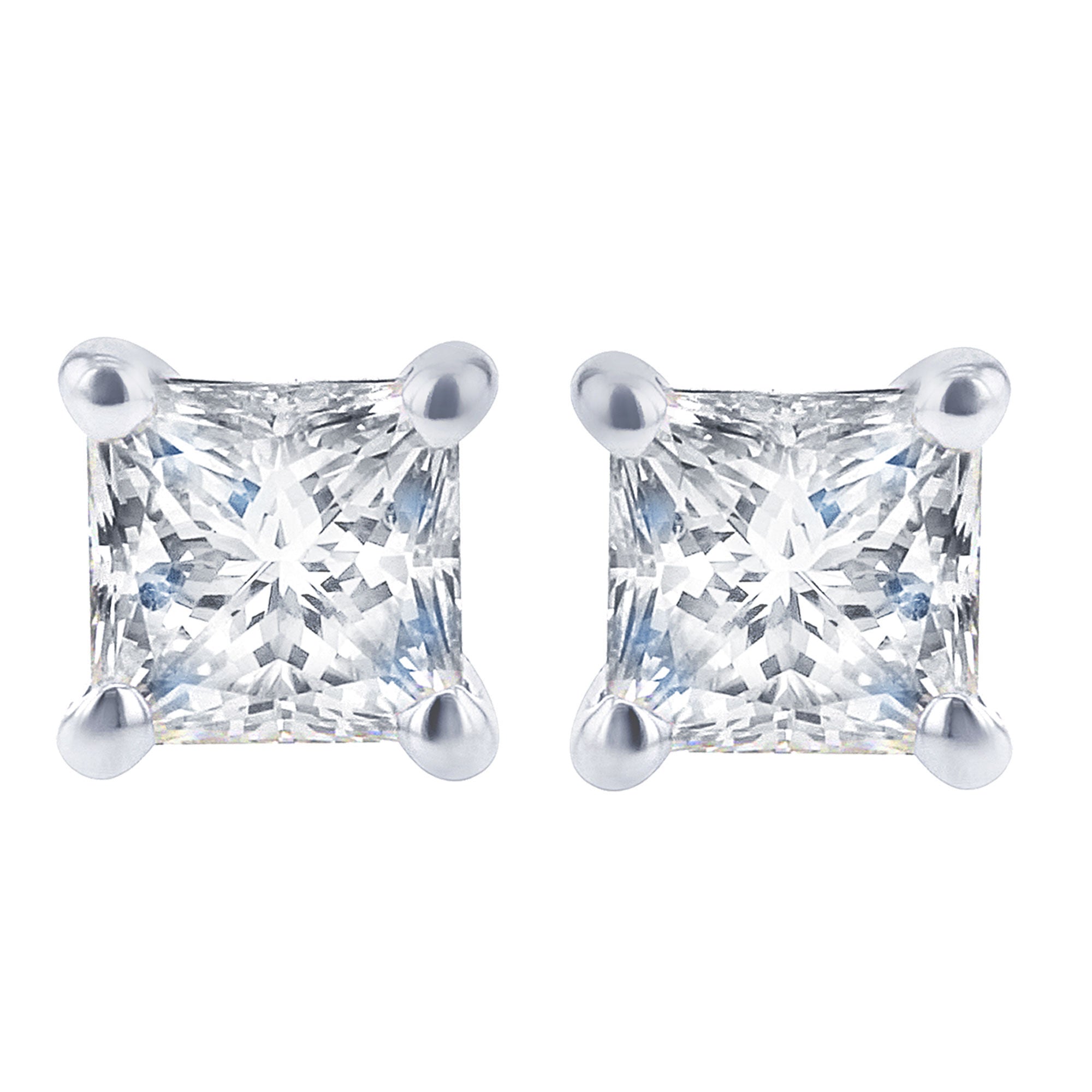 High quality princess cut diamonds equaling 1 carat total weight are set in 14k white, yellow or rose gold. A beautiful diamond stud earring for your princess.