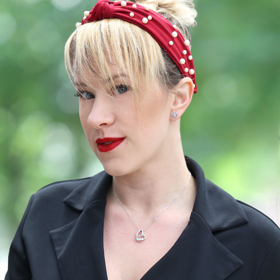 Express your love in more ways than one to score some major points, and reserve a spot in her heart. A heart strung on a tilted edge provides an invigorating display for dazzling round brilliant diamonds - some set in expert mirage plating, and some set in delicately crafted prongs. You know Steven likes to keep things interesting.